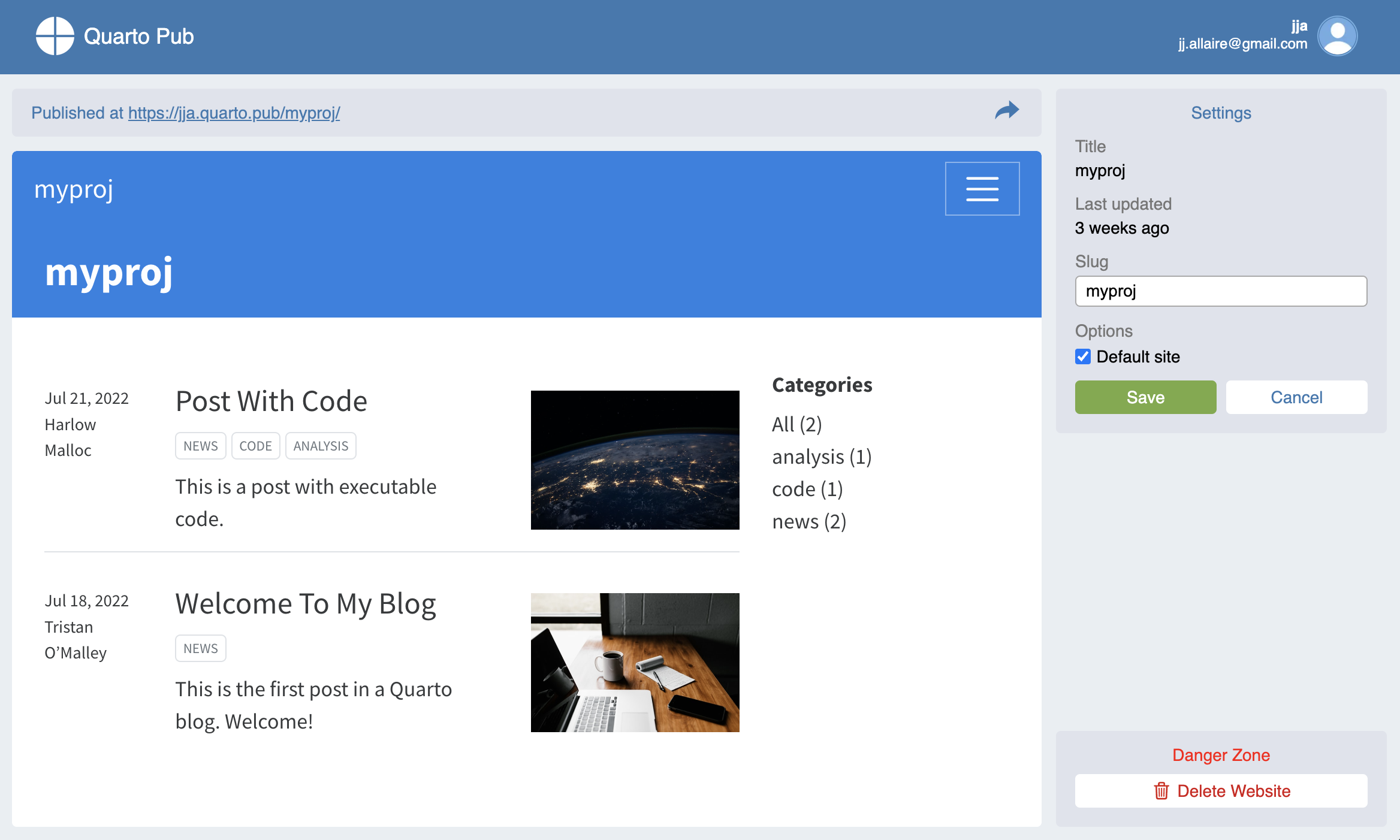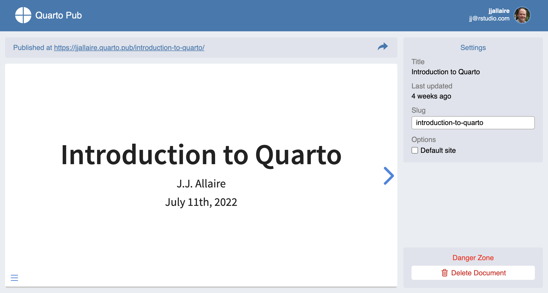 ❯ ✔ Quarto Pub: jj@rstudio.com